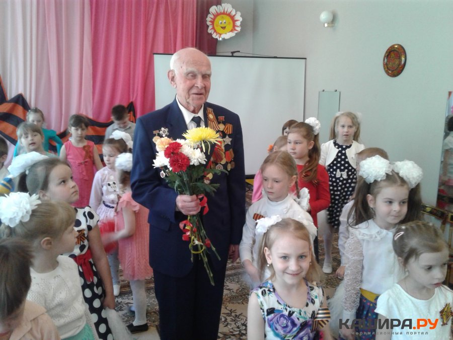 День Победы в МБДОУ "Детский сад № 9"с участием военнослужащих каширской воинской части, родителей, которые подготовили презентации о родственниках-фронтовиках.