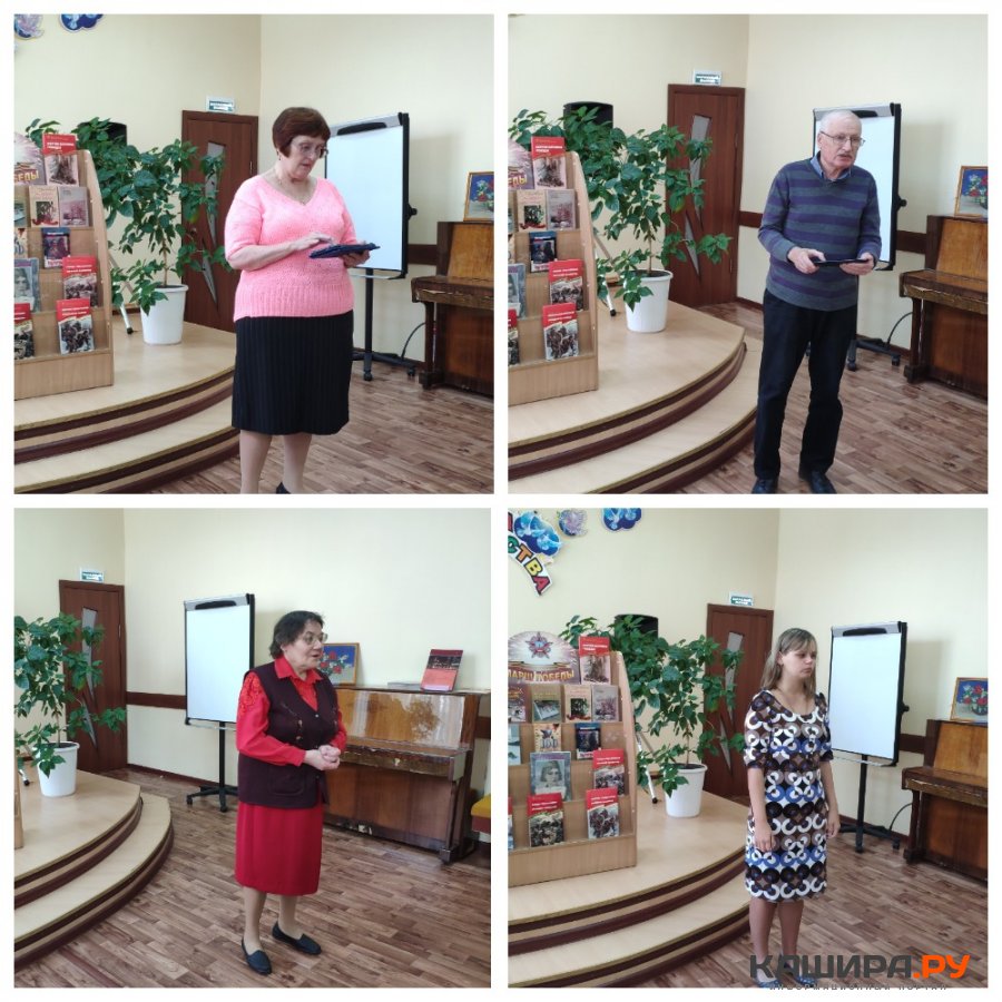 Галина Петровна Аббакумова: «Эту дату никогда нельзя забывать!» Поэтесса прочитала свои произведения, посвящённые военным годам: «В строю бессмертного полка», «Дети войны», «У вечного огня». Владислав Сергеевич Бусов познакомил слушателей со своими стихами о войне на каширской земле: «Минута молчания», «У обелиска», «День памяти и скорби». Владислав Сергеевич поднял тему о без вести пропавших и рассказал о каширянине, сержанте В.Н. Макунине, сведения о нём нашёл в архиве г. Подольска.