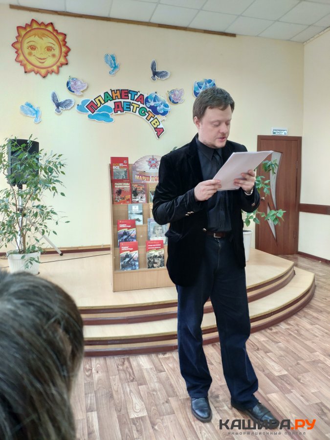 - Какой год мы собираемся с вами, в стенах этой замечательной библиотеки. У меня огромная благодарность вам, уважаемые коллеги, за то, что вы проводите такие тёплые, душевные вечера. Хочу поблагодарить вашего председателя. Она активна, неутомима, энергична. Разумеется, мы будем сотрудничать и дальше. Повод, действительно, очень важный. Каждый год мы вспоминаем две даты: красная дата со слезами на глазах – День Победы и дата начала войны – 22 июня, начало самого трагического события, эпохального события в истории нашего русского народа, всей нашей страны. Действительно, большое горе пришло на нашу землю, горе, которое стоило многих миллионов жизней – самого дорогого, что есть у каждого человека. Событие, в историю которого вписали огромное количество эпизодов, ярких моментов, подвига, которого до этого человечество не знало, и личного подвига наших людей, и подвига всего нашего народа, которое завершилось победой всего нашего человечества, не только Советского Союза, но и всего справедливого мира над фашисткой угрозой, фашисткой заразой. Дата, конечно, печальная, трагическая. Вспоминаются моменты истории нашей Каширы. В начале июля 1941 года формировалось каширское народное ополчение. Мало, кто знает этот эпизод в истории нашего города, но он очень важный, показательный, когда 600 человек, имеющие зачастую бронь, отсрочку от армии, написали заявление, пришли в военкомат и влились в ряды московского ополчения. Двадцать одна дивизия были сформированы, и отдельный каширский батальон влился в дивизию кировского района. И уже через несколько месяцев в начале операции «Тайфун», когда немецкие войска стали рваться к Москве, все эти дивизии народного ополчения, около четырёхсот тысяч человек вместе с нашим батальоном стали жертвой этого несчастья, трагедии, которая произошла на этом этапе войны, в начале сорок первого года. Единицы, кто остался жив. Не осталось ни архивов, ни документов. Лишь единицам удалось вырваться из окружения, они продолжали воевать, кто-то демобилизовался. Но сам факт, что шестьсот человек, имеющих право не идти на войну, отдали свою жизнь за своих товарищей, за свою Отчизну. Это, конечно же, один из тех героических эпизодов, которые есть в истории Каширы.