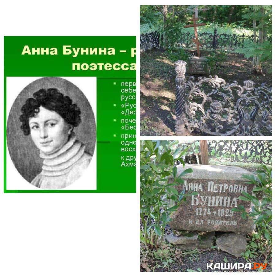 Рядом с храмом – могила Анны Буниной. Анна Петровна Бунина принадлежала тому же старинному роду, к которому принадлежали В.А. Жуковский, И.А. Бунин и Ю.А. Бунин. Памятник на её могиле сооружён её крестником, внуком сестры Марии, путешественником П.П. Семёновым – Тян-Шанским и племянницей Надеждой Ивановной Буниной.