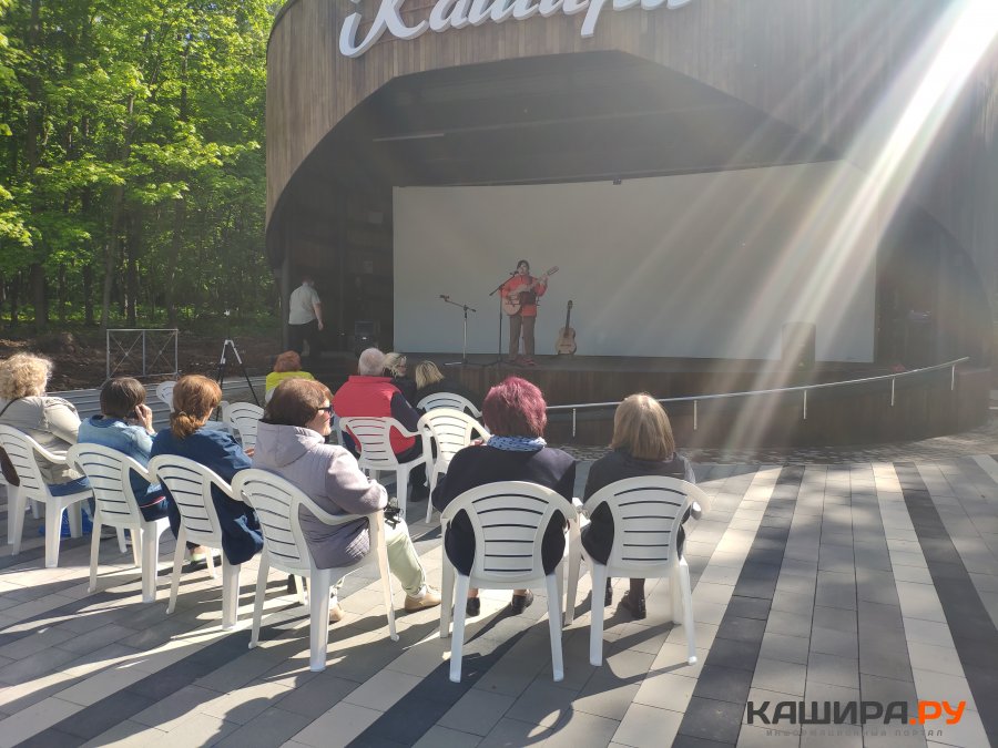 С людьми порой происходят разные события, истории в поездах, путешествиях. На эту тему Ирина исполнила песню «Электричка» Игоря Малыгина, где встретились «он» и «она». После исполнения произведения музыкант пожелала никому ни с кем не расставаться. В июне планируется сольный концерт Ирины Терёшиной, участницы клуба авторской песни «Созвучие» г.о. Кашира, на сцене парка.