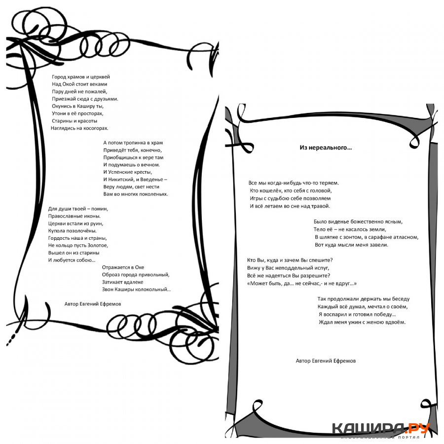 Обстановка вечера располагала к общению. Зрители с удовольствием подпевали знакомые песни. Евгений Ефремов сочинил удачное стихотворение «Город храмов и церквей», он читает его, когда проводит экскурсии по Кашире. На это стихотворение и другие написаны замечательные песни, которые прозвучали на вечере.