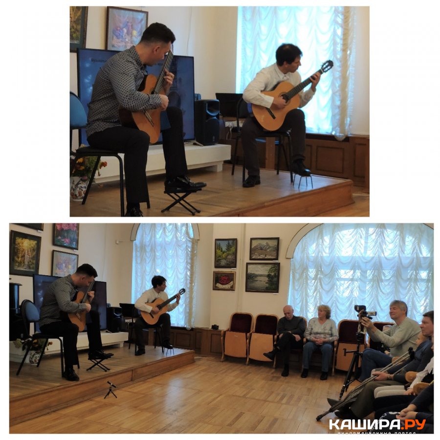 Крики "браво" и рукоплескания сопровождали выступления музыкантов Нет ничего прекрасней живой музыки. Мало слушать музыку, интересно наблюдать за эмоциями самого музыканта, за виртуозной игрой на инструменте. В Международный День музыки каширяне смогли приобщиться к прекрасному. Каширский краеведческий музей пригласил замечательных музыкантов, Лауреатов международных конкурсов – братьев Владислава и Алексея Домогацких, и Заслуженного работника культуры РФ -Анну Арзаманову. Концерт "Вечер шедевров русской и зарубежной гитарной музыки" собрал каширян в музыкальной гостиной музея.