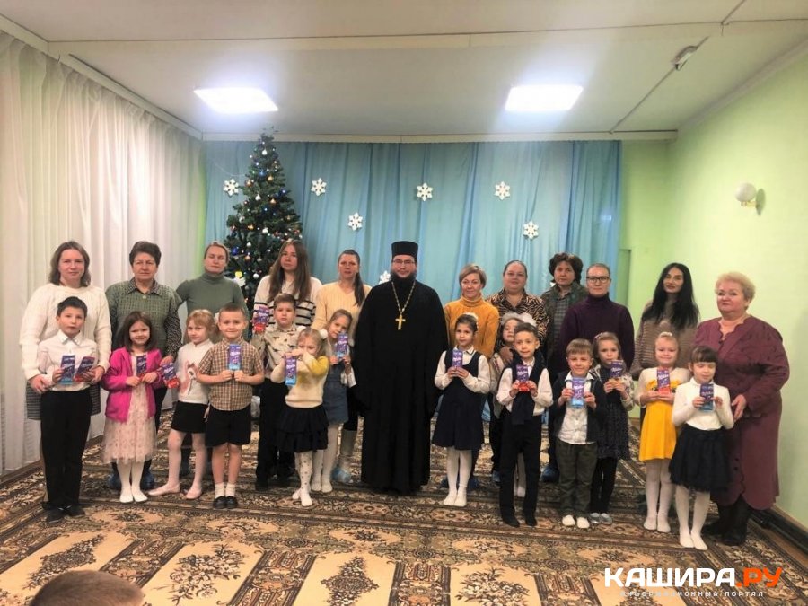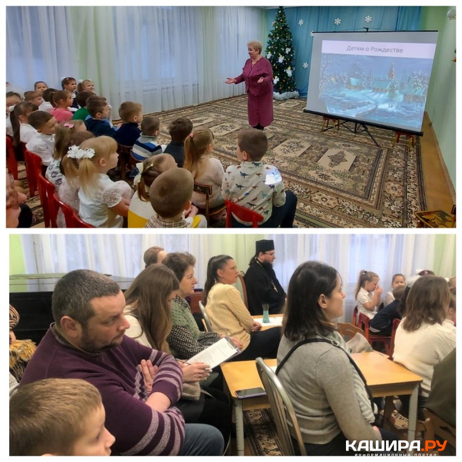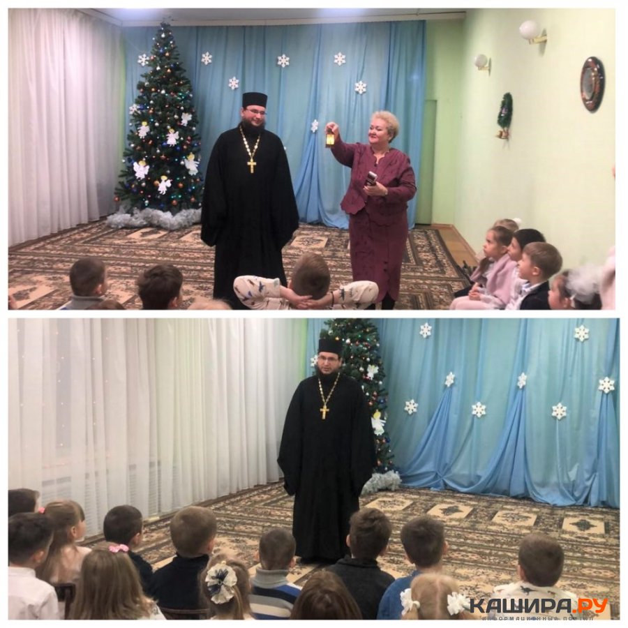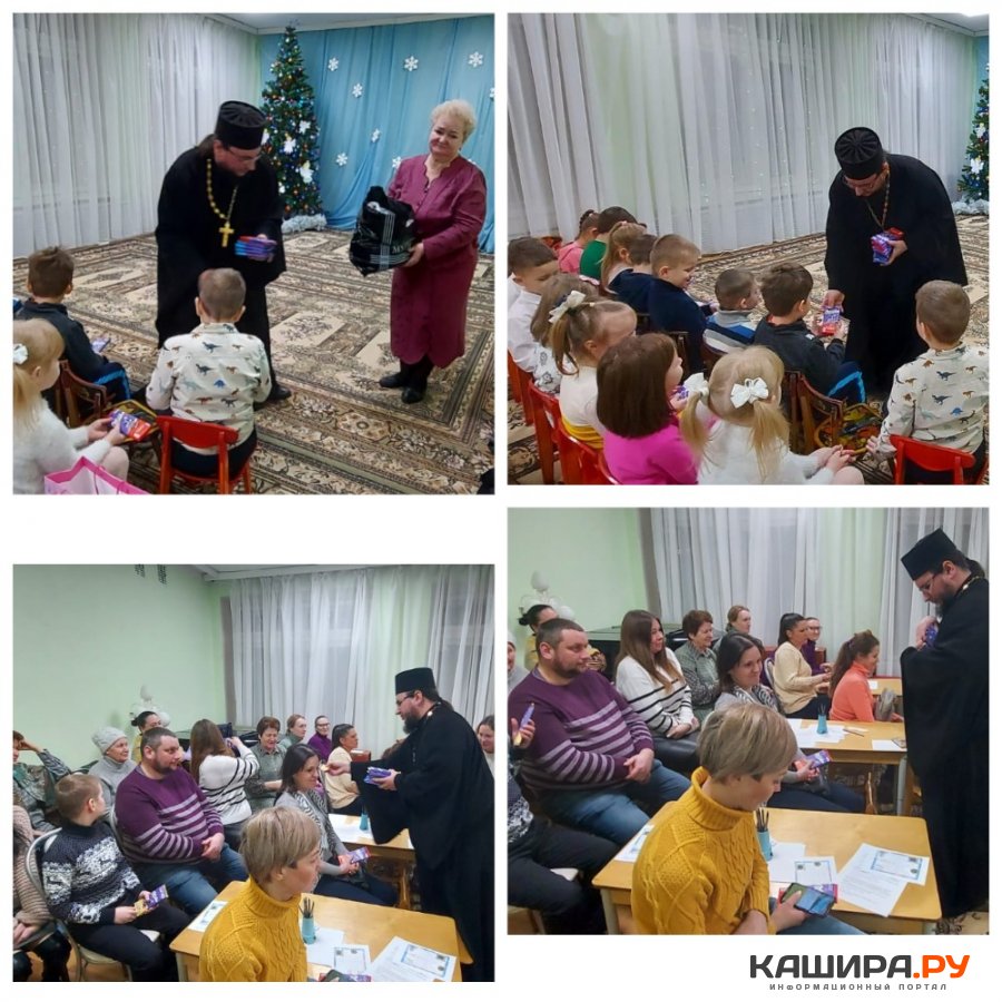 В рамках семейного клуба «Растём вместе» в дошкольном образовательном учреждении № 10 городского округа Кашира прошло занятие «Рождественская встреча» с участием настоятеля Успенского собора о. Александра (Волкова).