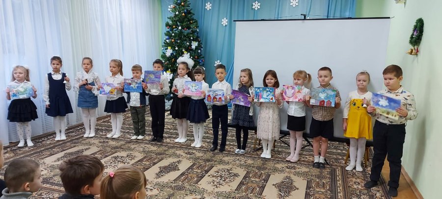 Звон колокольчиков известил о начале праздничного мероприятия. Нарядные воспитанники подготовительной к школе группы предстали перед родителями и детьми старшей группы с живописными рисунками на тему Рождества. Стихи о Рождестве Христовом и песня «Яркая звёздочка» настроили всех на тему занятия.