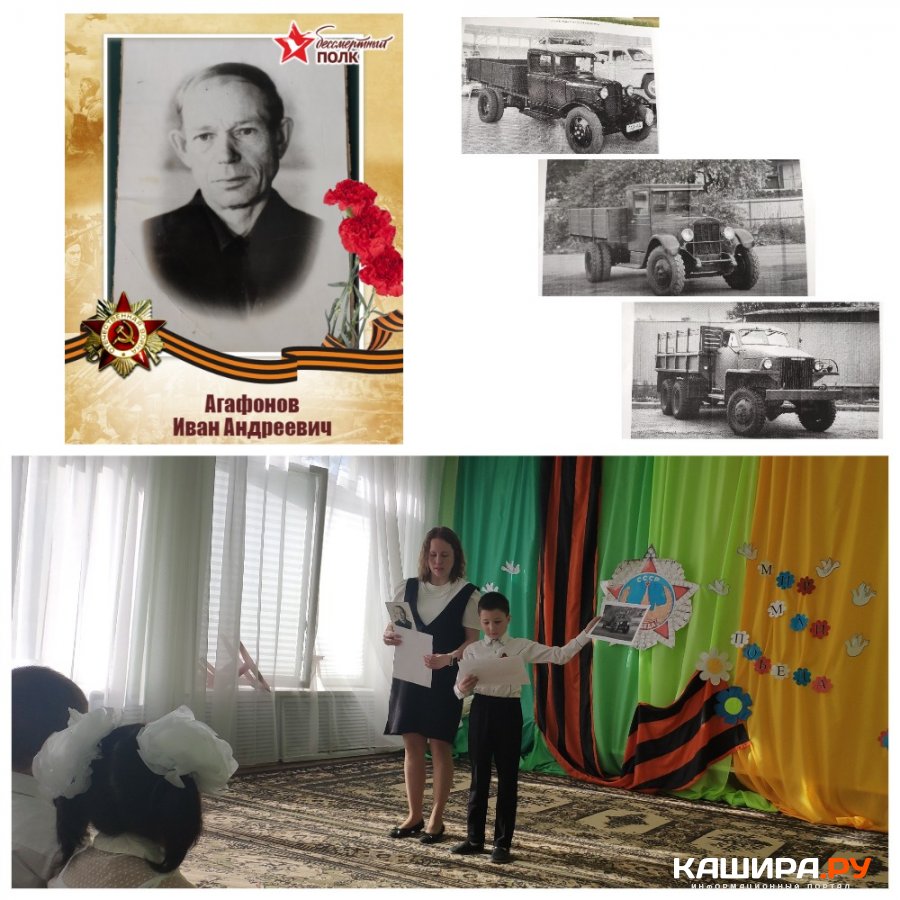 Агафонов Иван Андреевич, 21.01.1917г.р., родился в Рязанской области, Захаровского района, д. Асники.В 1935 году был призван на срочную службу. Там прошёл курсы водителей и получил право на управление автомашин. Весной 1939 года был отправлен в Монголию на Советско-Японскую войну, принимал участие в боевых действиях до осени 1939 года, до Победы наших войск. В !941 году началась Великая Отечественная война и Иван Андреевич вновь был призван на военную службу. С самого начала войны и до её окончания весь фронтовой путь был связан с машинами. Начинал он на знаменитой «Полуторке»ГАЗ-АА. Потом пересел на более мощный ЗИС-5, а заканчивал свой фронтовой путь на американском «Студебекере». В любую погоду, под обстрелами врага, он доставлял на передовую боеприпасы, вывозил с поля боя раненых бойцов. Много раз приходилось ему на ходу выпрыгивать из своей машины под огнём немецких самолётов. Иногда не обходилось без ранений. Награждён медалями: «За взятие Берлина», «За боевые заслуги», «За оборону Кавказа».