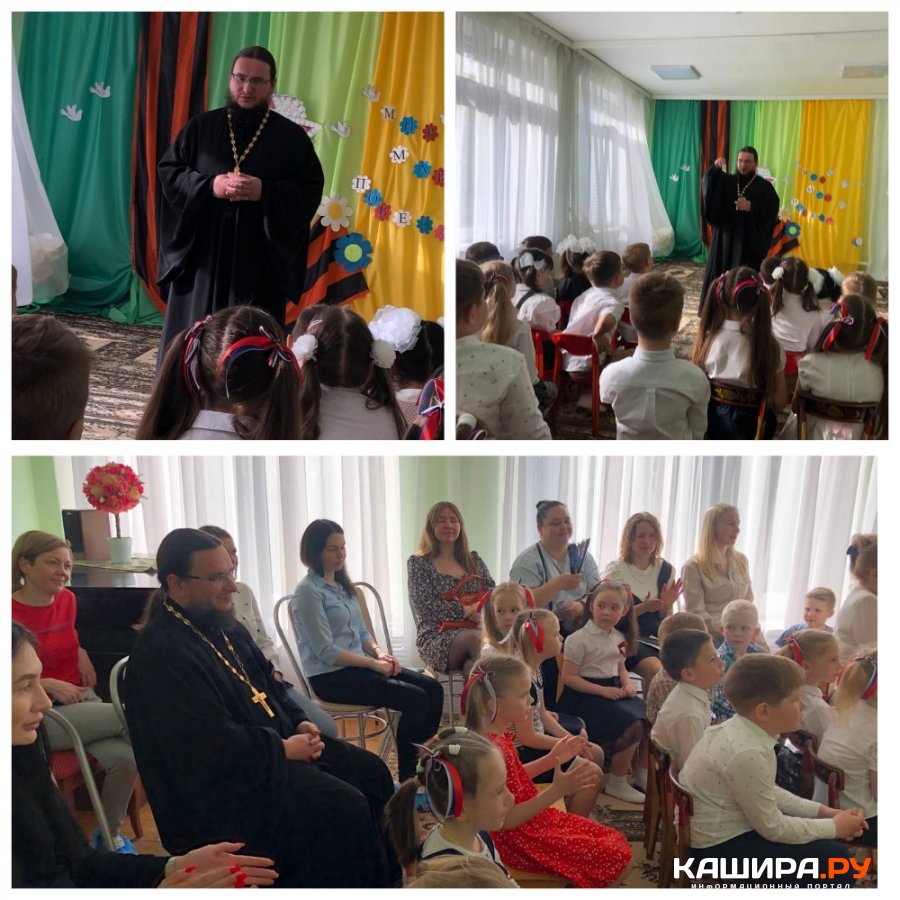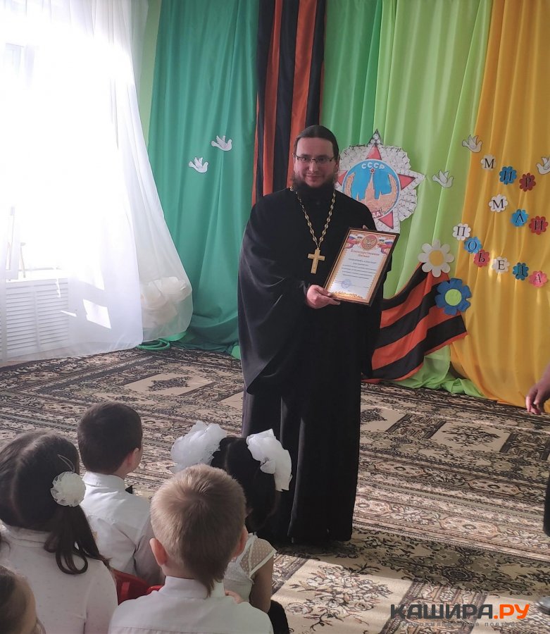 27 апреля 2023 года в МАДОУ «Детский сад № 10 городского округа Кашира» состоялся Урок мужества. На мероприятие были приглашены дети старшей группы, родители воспитанников, о. Александр (Волков), настоятель Успенского собора.