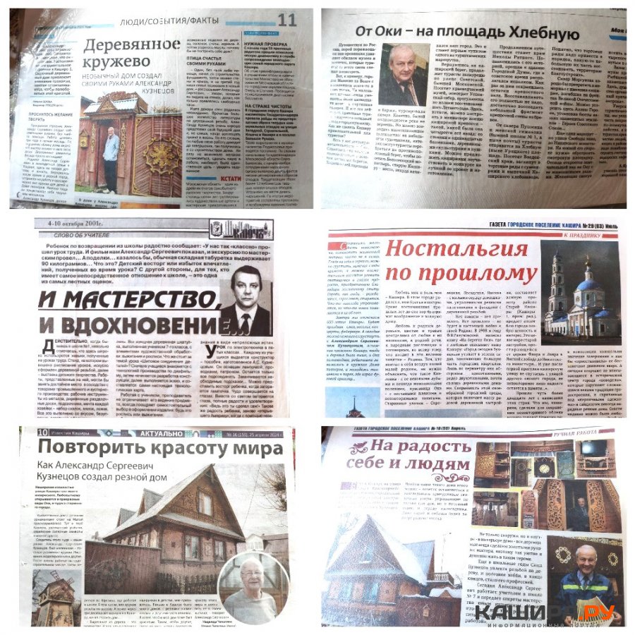 Александр Сергеевич внёс много предложений по обустройству города. Одна из идей – установка памятника учителям. Свои мысли он публиковал в местных газетах. Дома хранится целая стопа газет с заметками разных авторов о самом хозяине и о красивом доме. На резных книжных полках хранятся книги со стихами местных поэтов, книги по краеведению А. Горелова, учебники по резьбе по дереву, книга об учителях Каширы - участниках ВОВ, подарок О.А. Любомудровой.