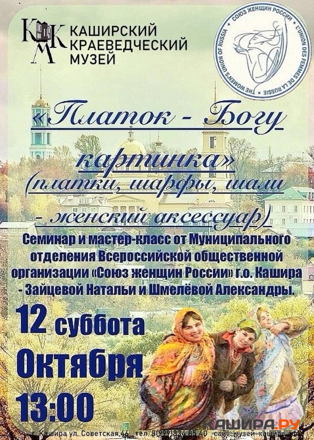 В преддверии православного праздника Покрова Пресвятой Богородицы, муниципальное отделение всероссийской общественной организации «Союз женщин России» г.о. Кашира, по соглашению с Каширским краеведческим музеем, провело семинар и мастер-класс "Платок - Богу картинка».
