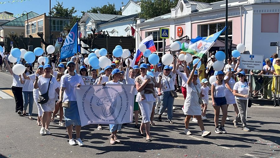 И уже на праздничном шествии Дня города муниципальное отделение «Союз женщин России» г.о. Кашира шло отдельной колонной с эмблемой Союза.