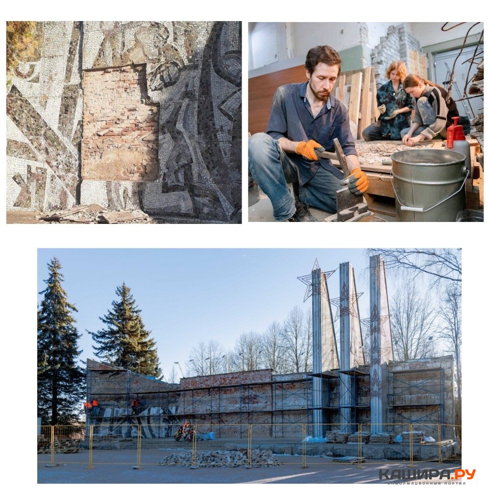 Реставрация мозаичного полотна проводится в мастерской Алексея в Кашире. Генподрядчик ООО «Наследие - проект», который занимается непосредственно памятниками.