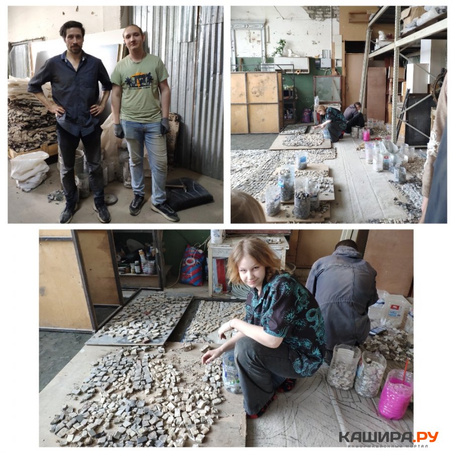 Для реализации заказа в Кашире у мастера в срочном темпе нашлись помощники, часть из них студенты художественно-промышленной академии Штиглица на факультете монументальной живописи в Санкт-Петербурге, бывшие ученицы, которые отработали в мастерской все каникулы. Приходят студенты железнодорожного колледжа работать, есть и постоянные работники, друзья из Москвы, которые работают вахтовым методом. У Алексея и работников сложилось полное взаимопонимание. Работника Павла Гетмана мотивирует приобщение к истории, творчество, опыт работы в творческой мастерской с профессионалом.
