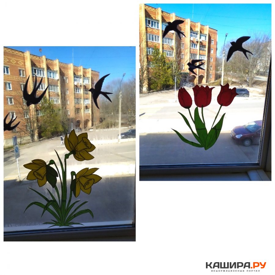 В настоящее время, увы, не во всех детских садах разрешено рисовать на окнах. Зато на стёклах городских и сельских библиотек в наше время можно увидеть и осенние, и зимние, и весенние пейзажи.