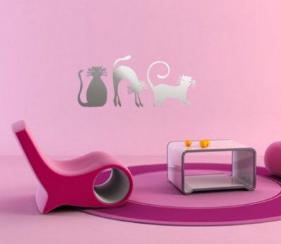 Хочется перемен в интерьере! Чего-то эдакого, интригующего и манящего, динамичного и драйвового, изысканного и утонченного! Что поможет? Спасет декор стен. Он подарит не только наслаждение процессом, познание нового, но и станет «изюминкой» жилого помещения! В одном из огромных магазинов, пользующихся большим спросом у населения, вы присмотрели зеркальные силуэты кошечек, они и стали «изюминкой» вашей комнаты, а изящные чёрные кошки ( самоклейки) оживили зеркальный шкаф в прихожей.