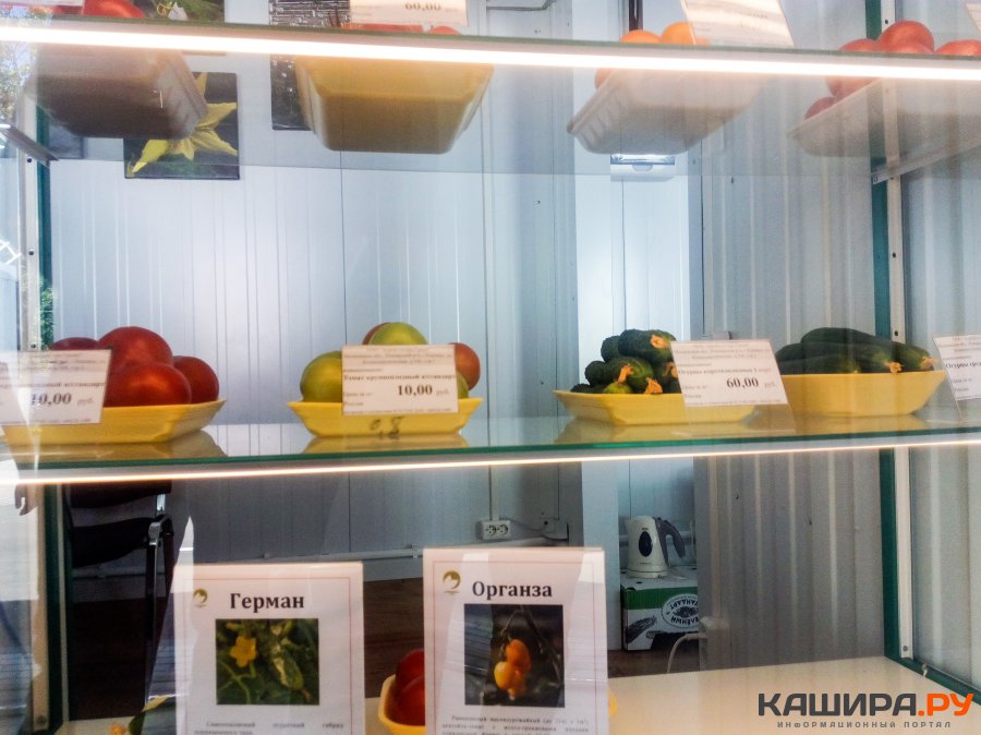 В недавно открывшемся магазине тепличного комплекса самые популярные овощи для закрутки, томаты и огурцы, предлагают дешевле всего. За тепличные томаты с вас попросят от 10 рублей (это за спелые, а также еще недозревшие), а далее, в зависимости от сорта, ценник поднимается до 60 рублей. У огурцов ценовая история установилась на уровне 30 – 60 рублей. А вот перцы и баклажаны обещают продавать уже с осени. Не выросли пока.